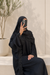 A beautifully simple 3-piece set designed with soft, elegant details. The abaya features delicate lace trims finished with tiny black rhinestones, adding a subtle touch of shine while keeping the look minimal and refined.